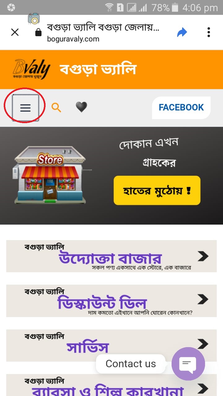 ১. মোবাইল থেকে বগুড়া ভ্যালি ওয়েবসাইটে ঢুকে মেনু অপশনে (৩ ডট) ক্লিক করুন।